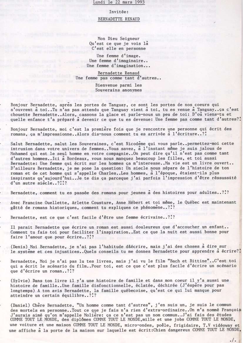22 mars 1993 | Débats de Souverains, Audios, Rencontres, 1990 à 1995