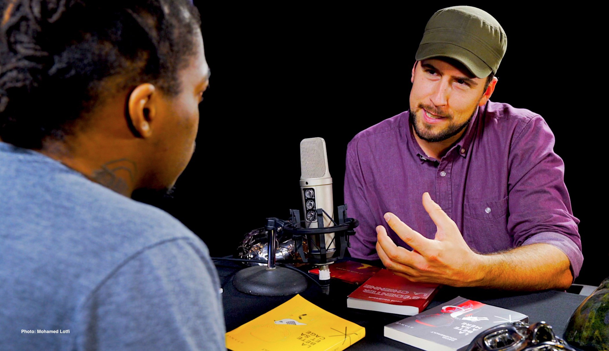 1- Bonjour David, je m’appelle Caspy. Ça fait longtemps que Mohamed voulait t’inviter à notre émission. C’est fait. Bienvenue chez-nous. David, tu es poète, slameur, rappeur, chroniqueur, romancier et aussi travailleur social. Dans ces multiples occupations ton outil premier de travail c’est la langue. Nous avons pris connaissance de tes écrits, tes slams, tes rappes, Ce sont tes chroniques à Radio Canada qui m’ont le plus impressionné, surtout cette chronique ou tu dénonces les abus sexuels de certains hommes de pouvoir.