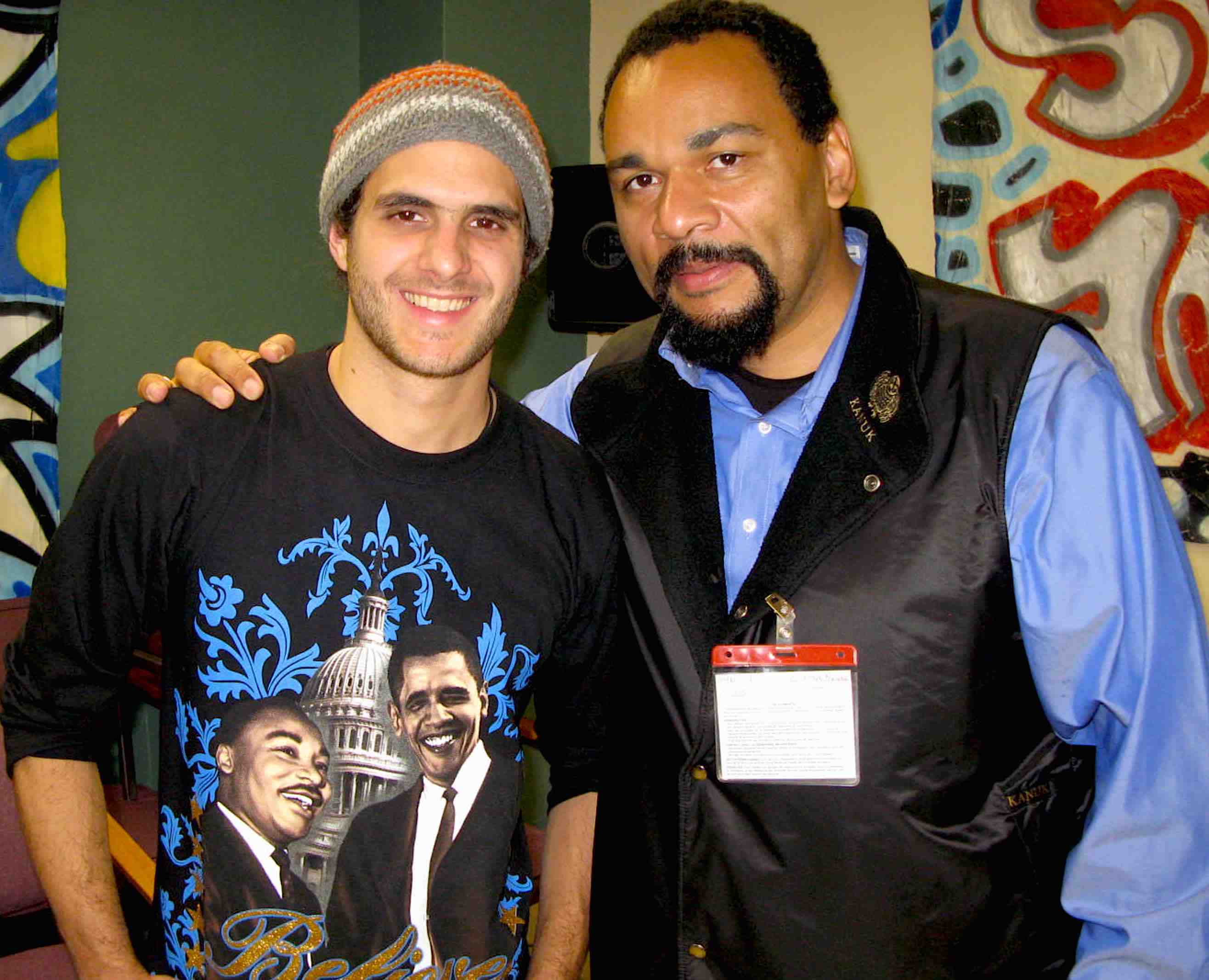 01- Bonjour Dieudo, je m’appelle Rollo. C’est un honneur pour moi et mes amis Souverains de recevoir à notre château un imminent représentant du peuple de la forêt. Un peuple dont je fais partie. Comme tu sais, depuis deux jours, les américains ont choisi comme président du monde quelqu’un comme toi et moi, c'est-à-dire un représentant du peuple de la forêt. On ne va pas bouder notre plaisir, notre victoire, je ne me suis jamais senti aussi fier d’être noir que depuis deux jours et je ne suis pas le seul, beaucoup de mes amis blancs se sentent fiers d’être noirs..!! Hé, oui.. Bientôt, tu verras dans les rues des blonds et des blondes aux cheveux rasta, danser le zouk, le compa, le rara.. Mais si tu permets Dieudo, on parlera de cette victoire un peu plus tard. Pour l’instant, j’aimerais souligner la présence avec nous d’un autre représentant de la forêt, notre artiste-percussionniste préféré, notre ami fidèle, Kattam. Dieudonné, depuis quelques jours, tu as traversé quelques villes du Québec pour présenter ton nouveau spectacle que tu appelles ‘’J’ai fais l’con’’. On verra plus tard avec mes amis, lequel entre toi et nous a vraiment fais le con ? Cher Dieudo, comme ne nous faisons pas partie de la corporation des journalistes, nous allons simplement être nous-mêmes, c'est-à-dire des Souverains. Au lieu de te poser des questions que tu as entendues mille fois, nous aimerions plutôt aborder avec toi quelques thèmes essentiels. Par exemple, l’amour, l’humour, la paix, la Palestine, la liberté, l’amitié, le racisme, Obama et l’avenir des pygmées. Commençons par le plus important, l’amour : Dieudonné, tu ne serais pas le fruit d’une crêpe bretonne qu’un jour ta mère a servi a ton père pour le séduire et faire de lui le père de ses enfants..? (Autrement dit, raconte-nous simplement de quel amour viens-tu..?).