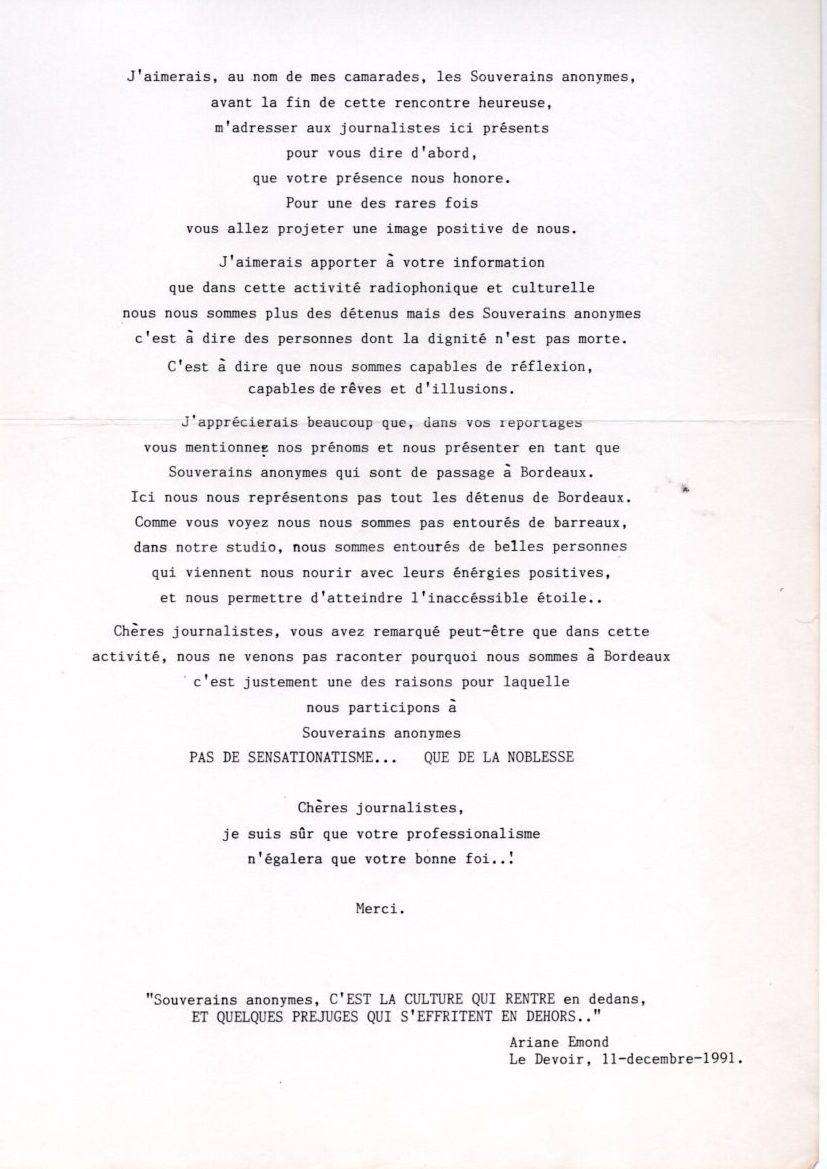 31 janv. 1991 | Audios, Rencontres, 1990 à 1995, Rencontres médiatisées