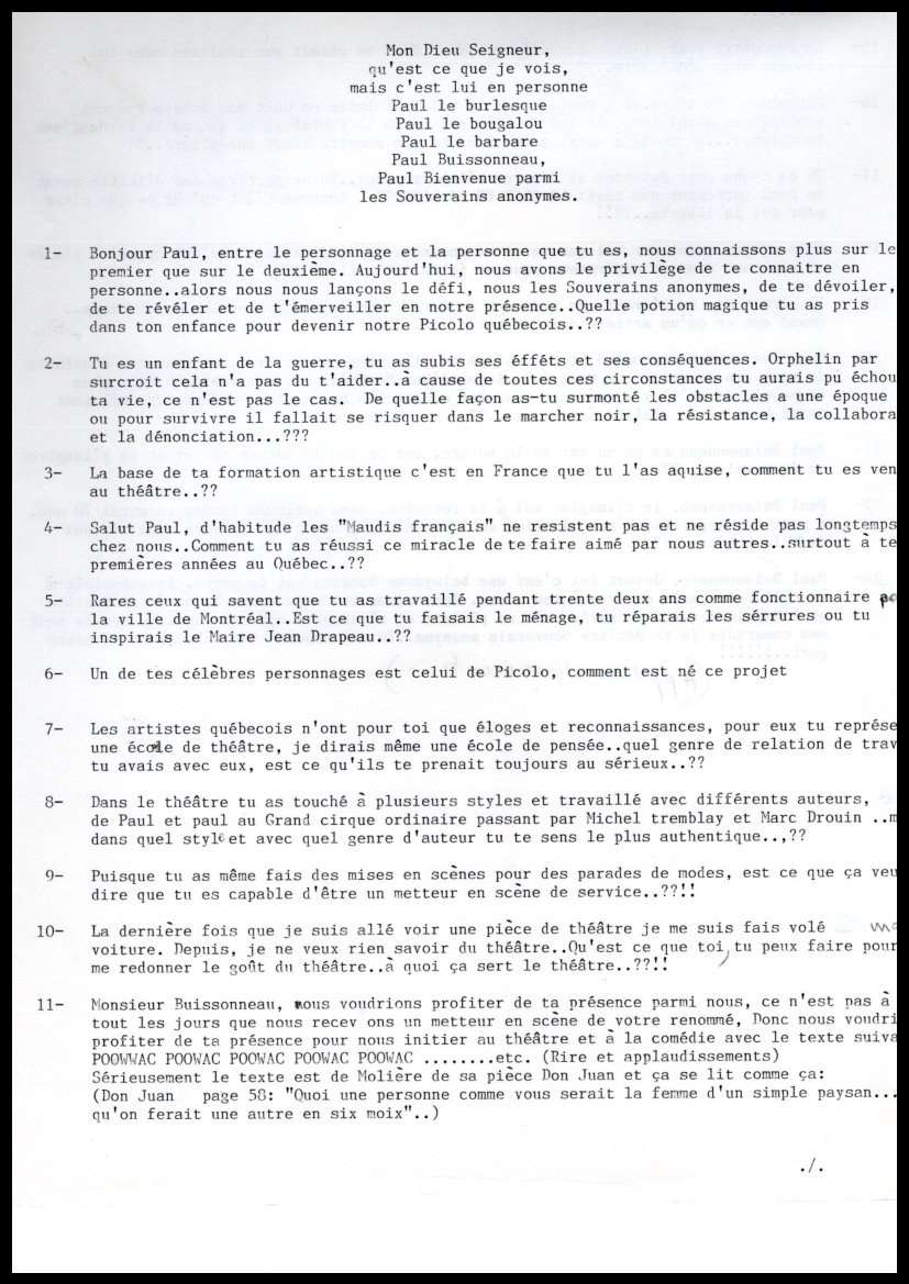 Paul Buissonneau joue Don Juan devant les Souverains!