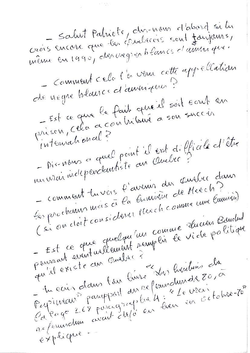 La rencontre se termine avec la lecture par un Souverain des dernières lignes de « Nègres blancs d’Amérique » qui appellent les québécois à l’espoir et à la responsabilité.