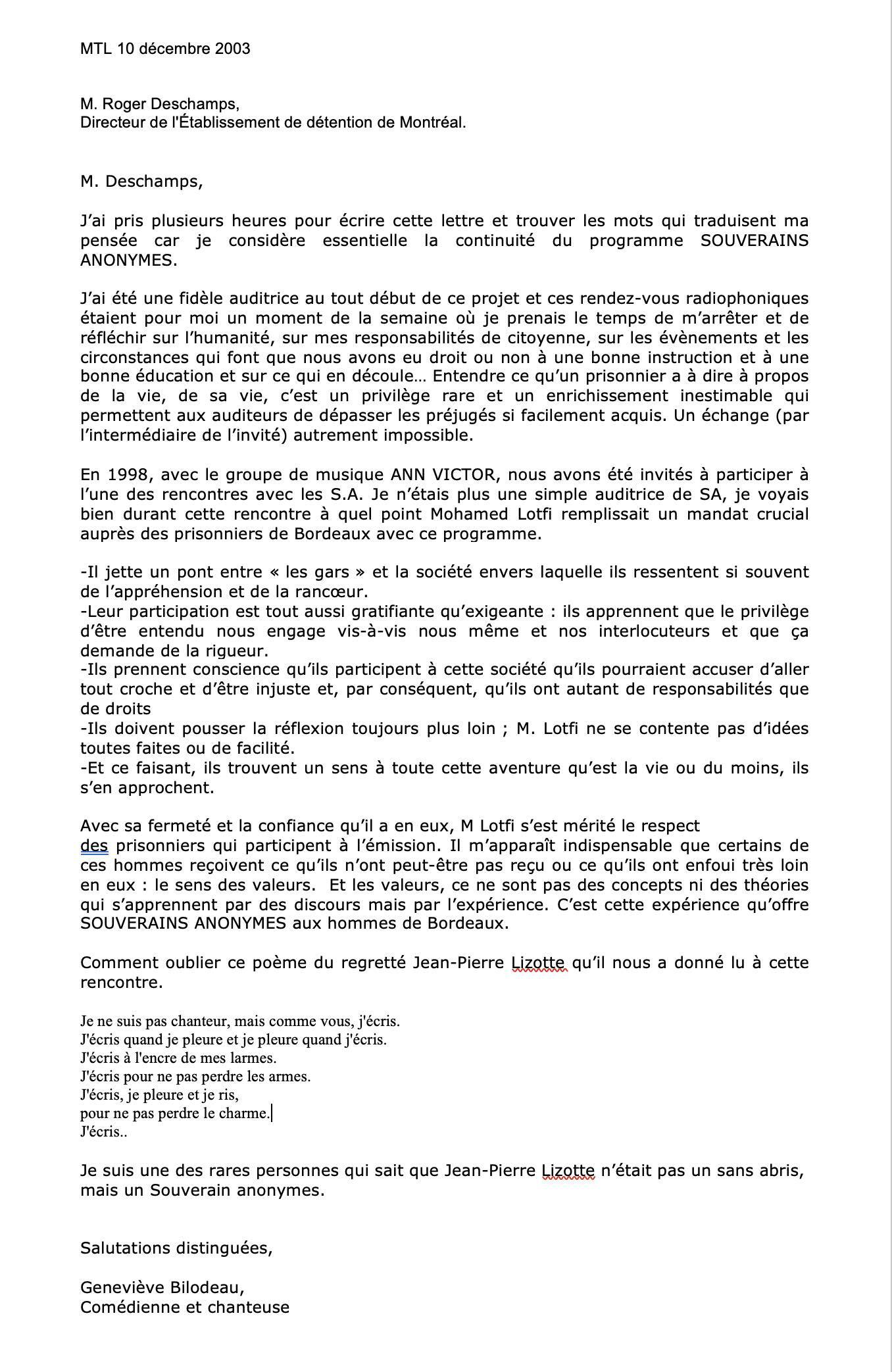 Une question que je ie pose à toi Geneviève.